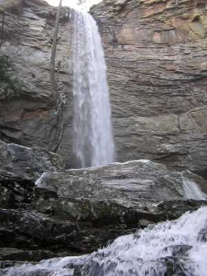 Falling Water Falls is a 136-acre natural area in Hamilton County. It is named for the 110-foot high waterfall on Little Falling Water Creek that drops over the resistant sandstone cap of the Cumberland Plateau. It plunges into the Falling Water Gorge, tumbling over cascades and passing large moss-covered boulders, before joining the Big Falling Water Creek in Pickett Gulf. The small cliff top section of the natural area is in the town of Walden while most of the natural area is located below the falls in Soddy-Daisy.
