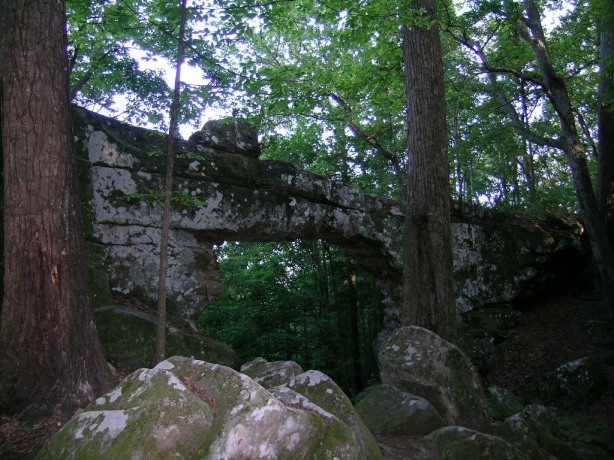 Natural Bridge is a three-acre natural area located in Franklin County. Natural Bridge is a 25 feet high natural sandstone arch with a span of 50 feet that provides a scenic overlook of Lost Cove. There is a wet weather spring associated with a rock house located behind the natural bridge. The spring probably contributed to the formation of the arch. Lost Cove is a large karst formation on the dissected section of the Cumberland Plateau. It is essentially a giant sinkhole. Lost Creek flows into the valley and disappears into Lost Cove Cave at the Big Sinks and re-emerges as Crow Creek from Buggytop Cave within Mr. & Mrs. Harry Lee Carter State Natural Area. The site also has been referred to as Sewanee Natural Bridge since the University of the South in Sewanee once owned it. The natural area is a part of the South Cumberland Recreation Area.