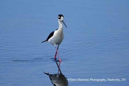 The Black-necked Stilt is an elegant black-and-white shorebird with a long neck and long red legs. It only started nesting in Tennessee in the early 1980s, and nesting is still restricted to the southwestern corner of the state. It is found around lakes and shorelines, and breeds in California and some western states, along the Gulf and Atlantic coasts, and south into Mexico and parts of South America; during the winter, it retreats from the northern parts of the range to join birds in Mexico, southern Florida, and the Caribbean.