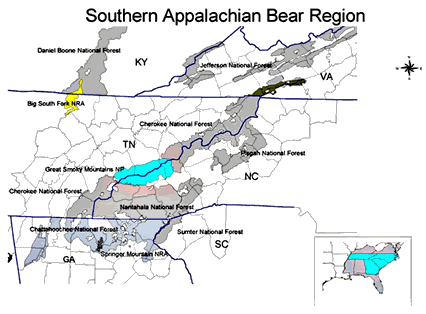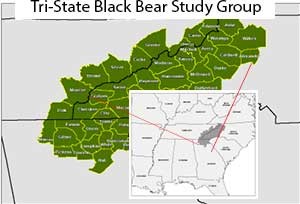 With the realization that the bear population was a shared resource with the states of North Carolina and Georgia, a multi-state collaboration was needed. This resulted in the formation of the Tri-State Black Bear Study in 1976 (Figure 2). From this study a committee was developed to create a venue to share management and research information among government and research institutions. Decisions made by this group played a pivotal role in the regional bear management success we realize today. The Tri-State Black Bear Study Group, now known as the Southern Appalachian Black Bear Study Group, has added three states (Kentucky, South Carolina and Virginia) and continues to meet biannually to share and discuss regional bear issues.