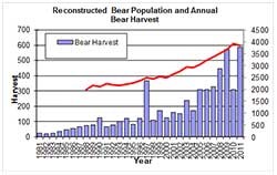 The second issue defined by the Tri-State Black Bear Study was to protect the female segment of the bear populations. Because females hibernate earlier than males, this was accomplished simply by moving hunting season later in the year. This slight change in hunting strategy reduced the percentage of females harvested from 56% before 1981 to 37% over the next 23 years.