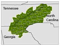 This map shows the current distribution (annual and seasonal) of black bears in Tennessee.