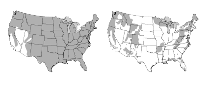 Recently Re-established is defined as areas where populations have been re-established within historical range and sustainable populations have become, or are expected to become established in the short-term. Evidence of reproduction has been documented. Seasonal/Transitional is defined as areas where bear sightings can be expected during the spring or late summer when bears are roaming in the search of food or establishment of home ranges. Proximity of an area to long-term occupied or recently re-established populations impacts frequency of these sightings.