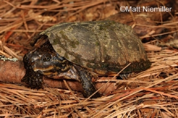 The Striped-necked Musk Turtle is found east of the Tennessee River (western middle Tennessee portion) with the exception of the Cumberland River drainage. The Stripe-necked Musk Turtle (S. m. peltifer) is the only subspecies of Loggerhead Musk Turtle that occurs in Tennessee.