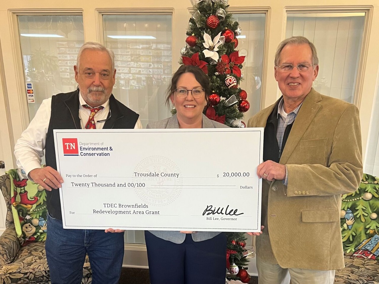 The Tennessee Department of Environment and Conservation (TDEC) recently presented a check for $20,000 to Trousdale County from the Brownfield Redevelopment Area Grants (BRAG) program.