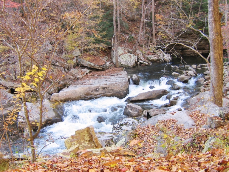 Laurel-Snow is located north of Dayton and is accessible via Highway 27/29. From the north turn right, and from the south turn left, onto Walnut Grove Road north of Dayton (new Eckerd Drug on corner). Proceed 3/4 of a mile to Back Valley Road (pass La-Z-Boy factory) and turn left. On Back Valley Road, proceed 0.7 miles to an unmarked gravel road/Richland Creek Road (small white church on the left) and turn right. Proceed about 1 mile to the parking area at the end of Richland Creek Road.