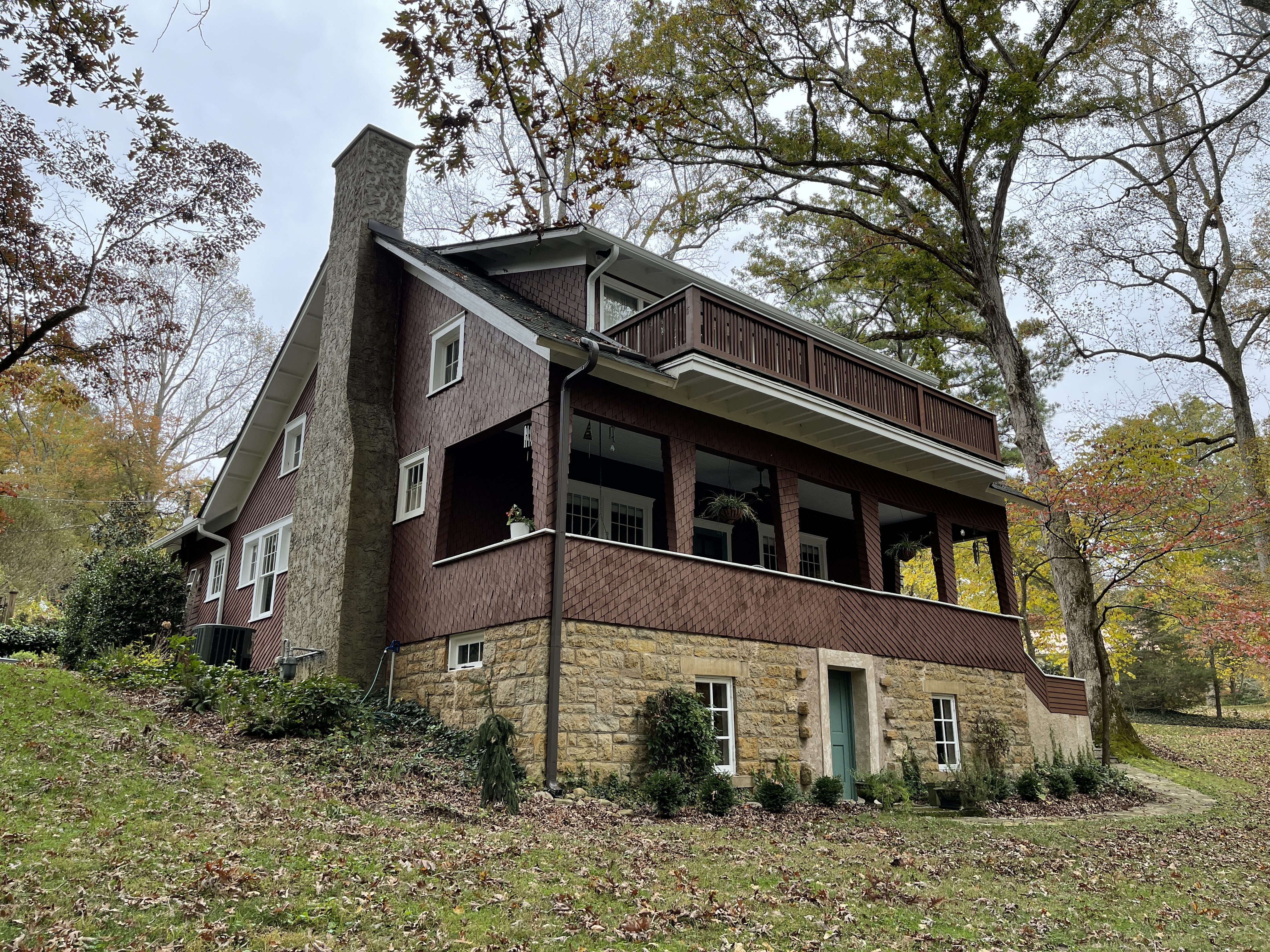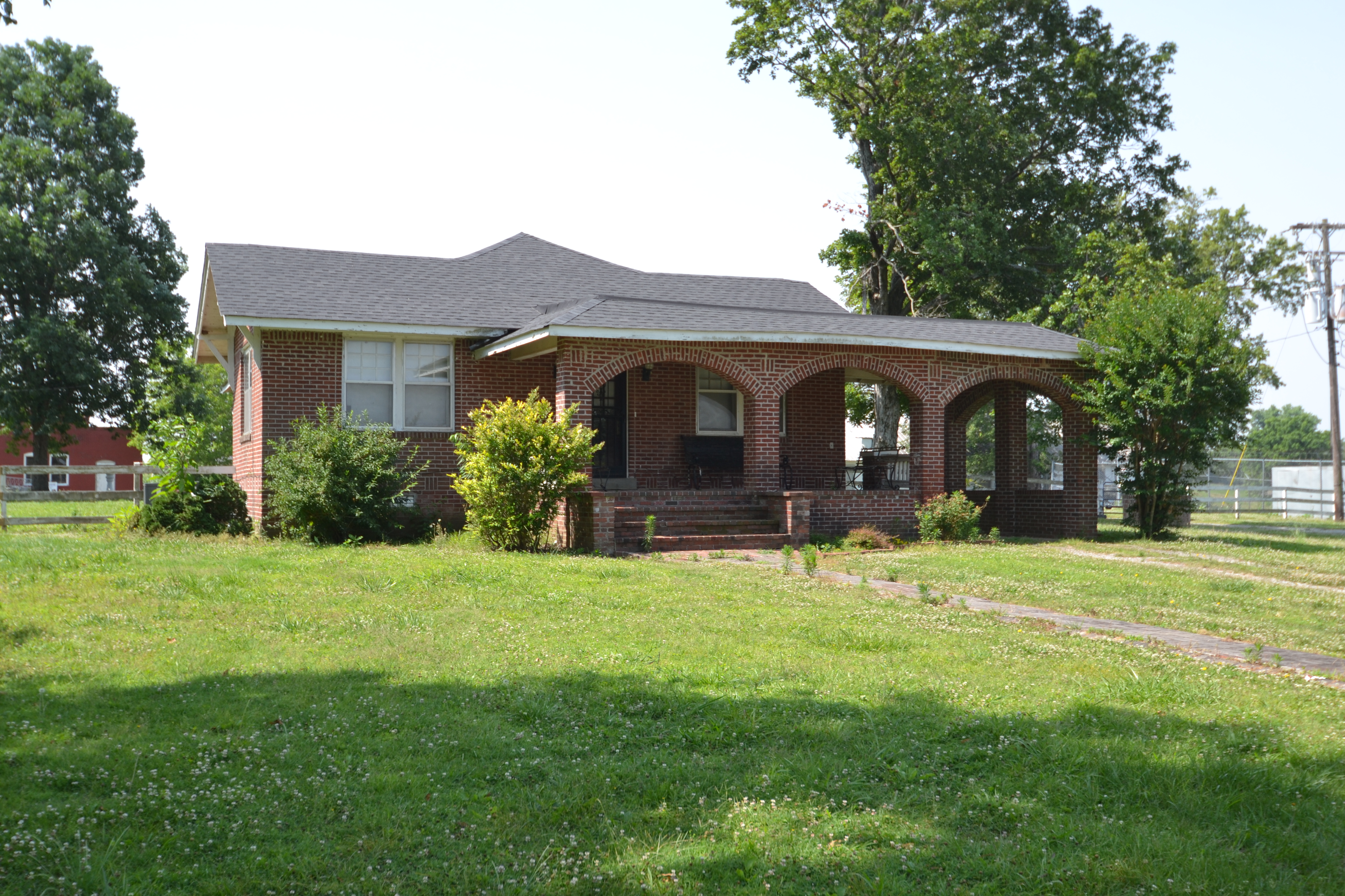 The Fox House (archived) sits on a ridge above Ovoca Lake along the northern edge of Tullahoma’s city limits in Coffee County. It was listed in the National Register of Historic Places on June 21, 2023, for its local architectural significance. The house was constructed in 1910 for Walter Dennis Fox and his wife Sara Bell Fox. W.D. Fox was a member of the Knights of Pythias fraternal organization and eventually rose to the station of Grand Keeper of the Records and Seal. He played a major role in the establishment of the Knights of Pythias Ovoca Home for Windows and Orphans, which was once located down the ridge from the residence. The Fox House is a locally important example of the Craftsman architectural style. Angled chestnut shingle siding, tapered shingled porch columns, and second-level sleeping porch are all character defining features of the residence. A Craftsman style garage was also constructed on the property in 1933. The Fox House changed ownership several times after the death of W.D. Fox in 1912 until the current owners purchased the property in 1995.