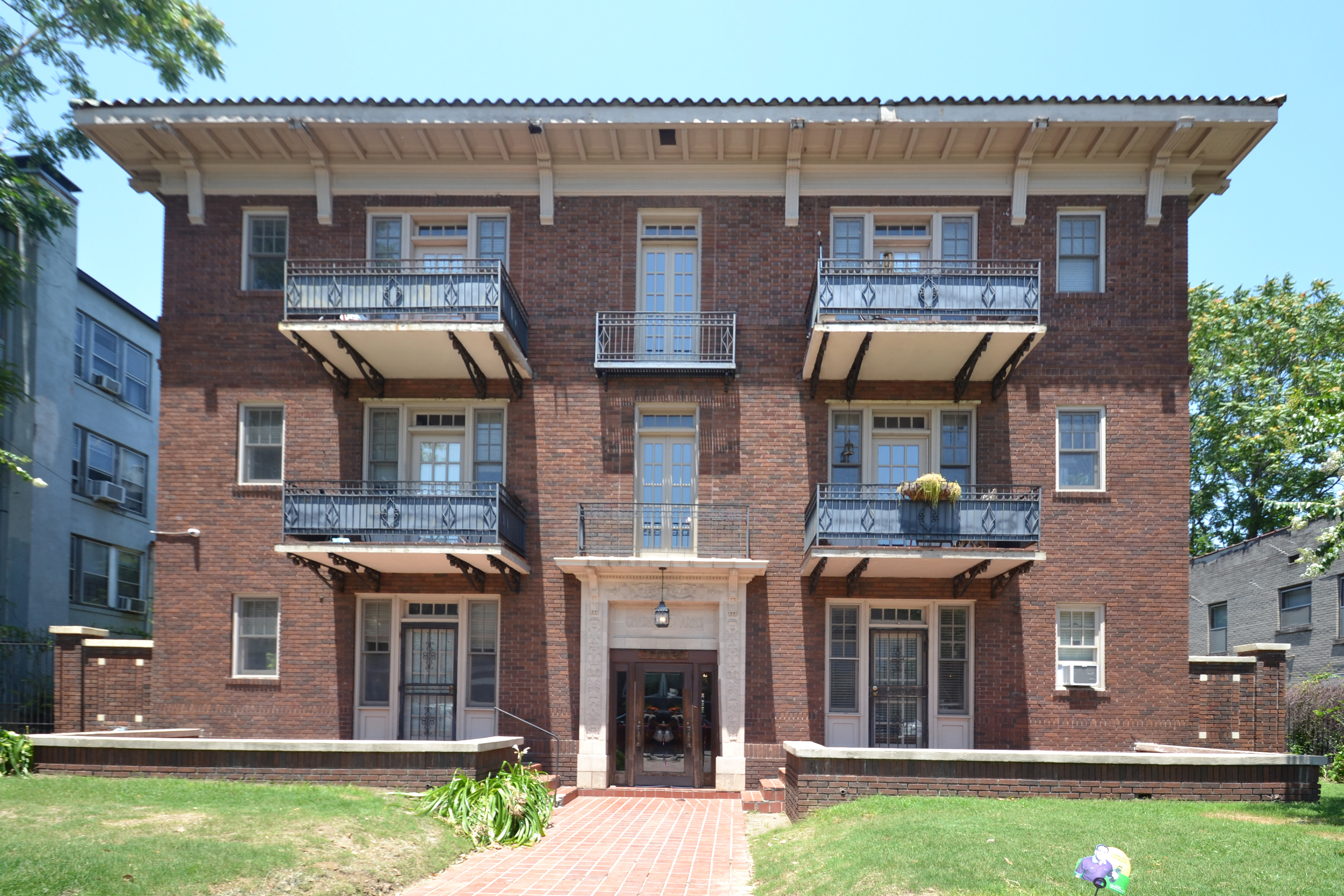 The Cherokee Arms (archived) is located in Memphis, Shelby County and was listed in the National Register under Criterion A and C on March 6, 2024, for local significance in architecture and community planning. William E. Barnes, a local real estate speculator, acquired land from Mary T. Sullivan in April of 1921. Barnes hired G. Lloyd Preacher, a prestigious architect from Atlanta, Georgia, and local architect Charles Deas to design an apartment building for the newly acquired lot. Gude and Company, also of Atlanta, were hired to build the apartments, which were finished in 1923. Upon its completion, the Cherokee Arms became a locally important example of the Italian Renaissance style as expressed in a Block Type apartment building. Important characteristics of the style include its terra cotta inlays and coping, brickwork, fenestration patterns, compact massing, and central interior hallway. The Cherokee Arms was also significant as one several apartment complexes built to house the burgeoning middle-class arriving in the city during the early twentieth century. The current owners pursued National Register listing to assist with preserving the building and to recognize its beauty.