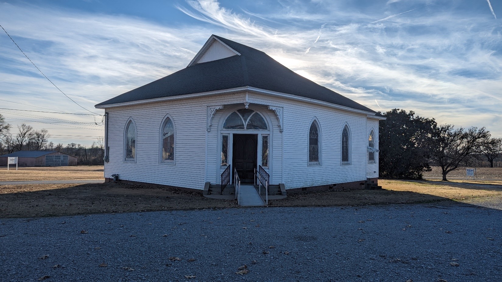 Woodlawn Baptist Church (archived), located in Nutbush, Haywood County, was listed in the National Register under Criterion C on March 15, 2024, for its local architectural significance. Nutbush is one of the oldest communities in Haywood County, and the Woodlawn Baptist Church congregation has played a vital role in the community since it was founded in 1846. The nominated church was built in 1916 on land donated by the Solomon family after the previous church building burned in 1915. It was constructed in the Gothic Revival style, as demonstrated by its pointed arch windows. However, what separates the church from other local examples is its unique Akron Plan arrangement. This plan featured rooms along the sanctuary equipped with moveable doors and walls to create smaller spaces for religious or educational meetings. Woodlawn uses tri-fold doors on the interior to accomplish the Akron Plan. Other important features of the church include wood ceilings, wainscoting, and wood floors. The congregation continues to use the church and maintain it much as their forebears did in years past.