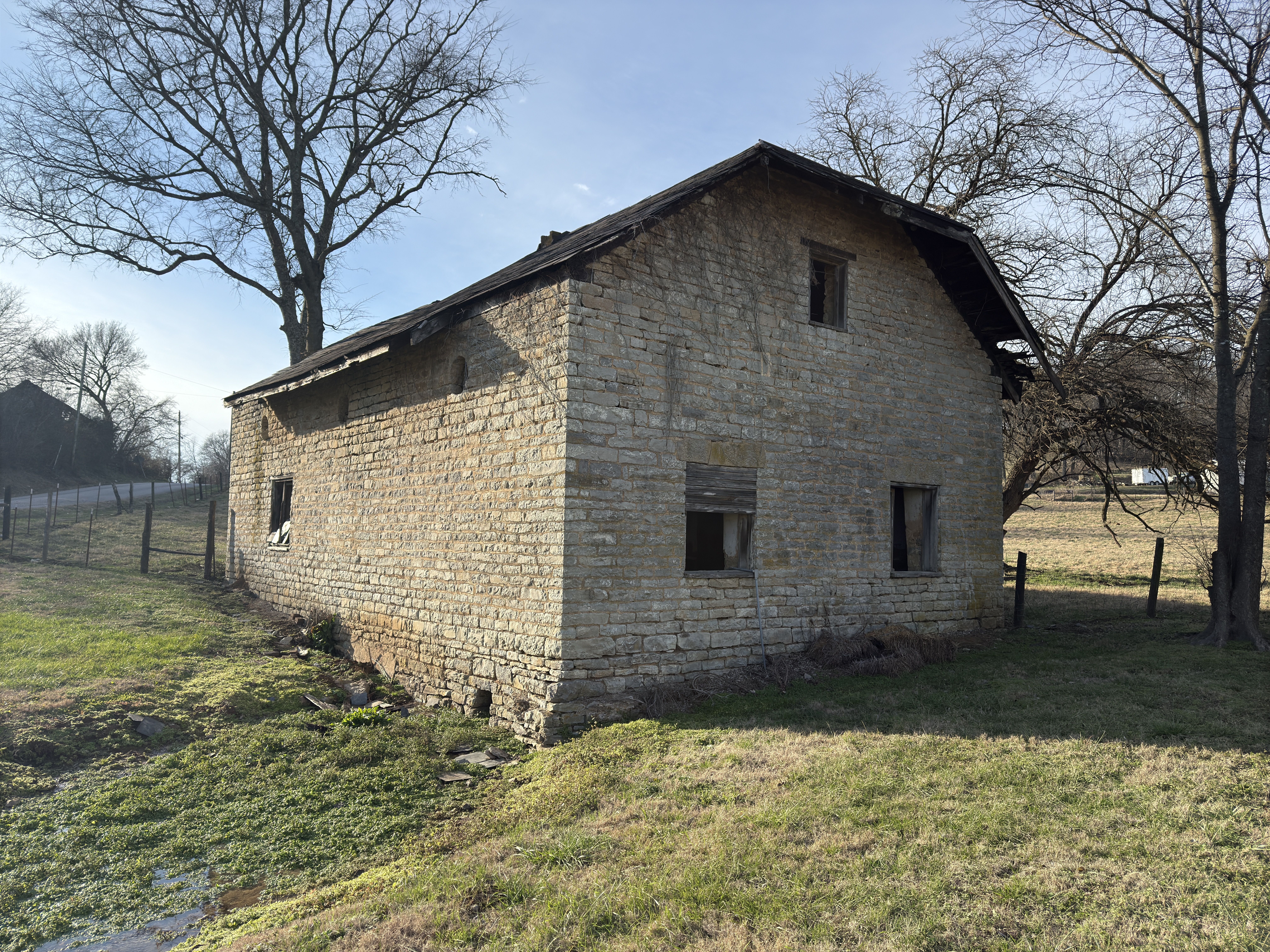 The Old Stone Creamery (Archived) is located in Spring Hill, Maury County. Listed in the National Register on August 1, 2025, the Old Stone Creamery is a locally significant example of a nineteenth century dairy building. The building was constructed in 1870 by Campbell Brown and his cousin McCoy “Mark” Campbell, the latter of whom was the founder of the National Register-listed Cleburne Jersey Farm. Campbell and his descendants transformed their small operation into a dairy farm recognized across the state for its dairy production. The Old Stone Creamery possesses the character defining features of a nineteenth century dairy building. This includes its stone construction, below grade rooms, “wet room” and “dry room” arrangement, plaster interior, and floor-level trough. Additionally, the clipped gable slate roof and wood gingerbread detailing demonstrate subtle applications of architectural detail to an otherwise utilitarian building. The Old Stone Creamery is now the namesake and logo of the Cleburne Jersey Farm, which is operated by descendants of the Campbell family. Milk produced onsite comes from the same bloodline of Jersey cattle bought by Mack Campbell more than one hundred years ago. The family is committed to the preservation of the building for future generations.