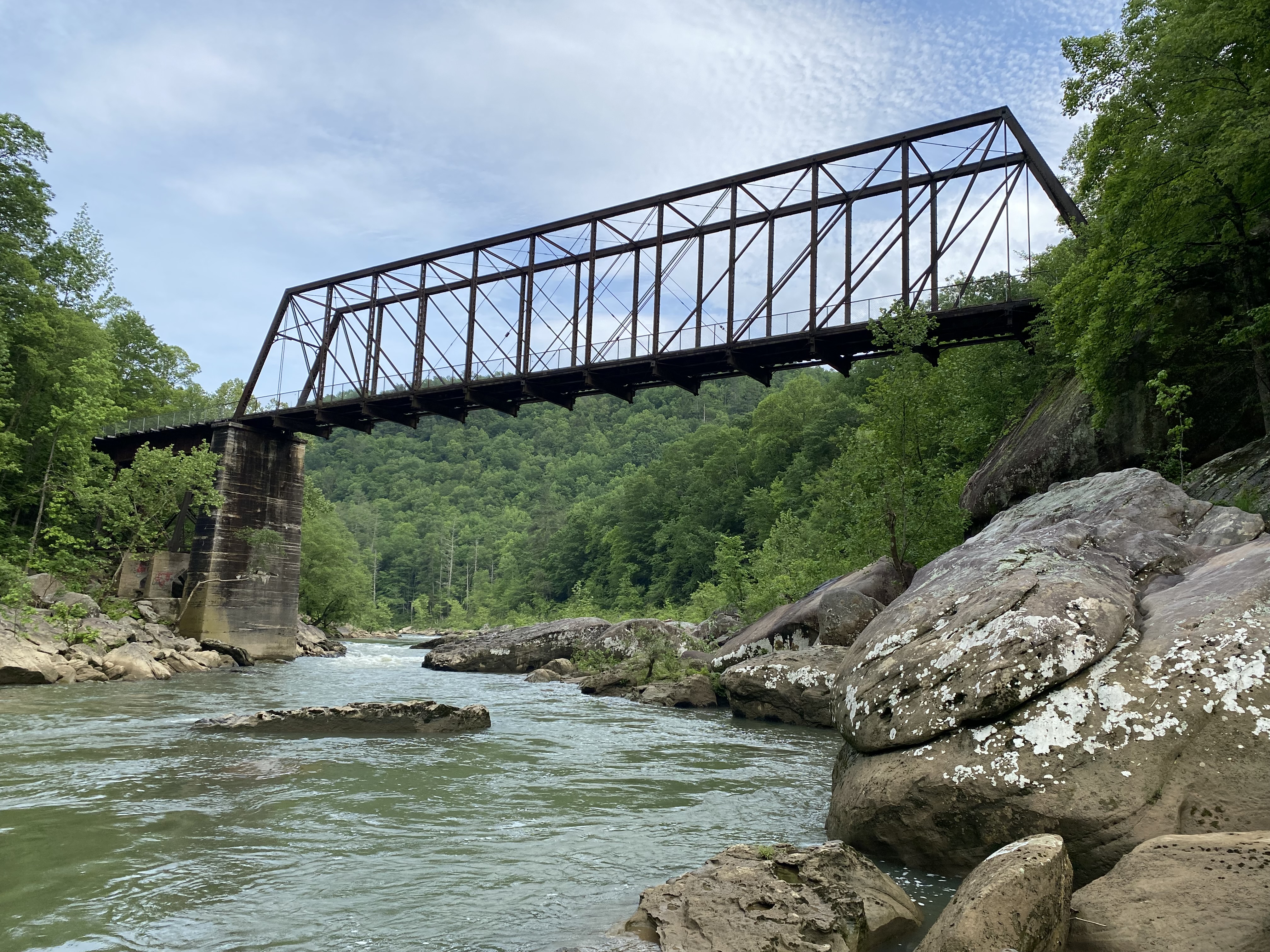 Listed in the National Register on December 18, 2025, the Oneida and Western Bridge (Archived) played a critical role in the Scott County railroad industry and encouraged the growth of several towns along the O&W railroad line. The O&W Bridge was initially constructed sometime between 1847 and 1900 by the Nashville Bridge Company and installed at an unknown location. On August 5th, 1913, the Oneida and Western Railway was chartered by the Tennessee Stave and Lumber Company to extract coal and timber along the Big South Fork of the Cumberland River. This line plunged deep into the inaccessible and rugged terrain that defines the Upper Cumberland. One of the largest obstacles workers faced was crossing the Big South Fork river. This led to the purchase and relocation of the bridge to its current location in 1915. With the river conquered, growth quickly followed. Towns like Oneida, Verdun, Stockton, and Jamestown all prospered with the railroad complete. Service along the line finally terminated on March 2, 1954, after years of decline. The National Park Service assumed stewardship of the land around the bridge, while Scott County took ownership of the bridge. Now the bridge is open to the public as part of the Big South Fork National River and Recreation Area’s hiking trail system. Both organizations play an important role in the preservation of the bridge.