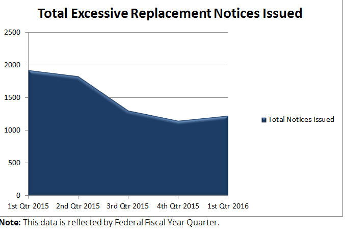 In 2012, the department began developing new procedures to prevent and deter SNAP trafficking (i.e. buying or selling of benefits) by monitoring the number of replacement Electronic Benefit Transfer (EBT) cards requested by Supplemental Nutrition Assistance Program (SNAP, formerly known as Food Stamp) recipients. The Department recently modified the tracking process so that as of August 2019, recipients who request three (3) or more cards in a 12 month period are sent a notice informing them that their account is being monitored for potential suspicious activity. If an additional card (5th) is requested after this notice is sent, the Department withholds issuance of the card until the recipient contacts the Department to explain the continued requests for additional cards. If the department suspects intentional misuse of the card, the recipient is referred for investigation. Since the modification of the EBT Replacement Card process, there have been 37,195 card replacements (as of October 2019). Of those replacements, 11% have met the threshold of 3 cards or more and issued notification. However, less than 1% have met the threshold for card withholding.