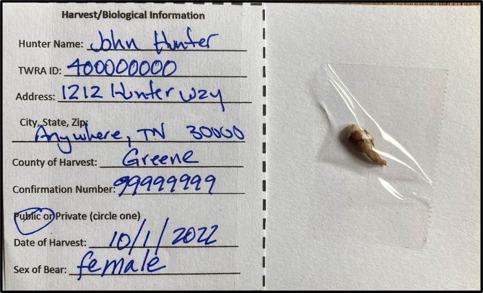 It is MANDATORY that a tooth sample from harvested bears be submitted.