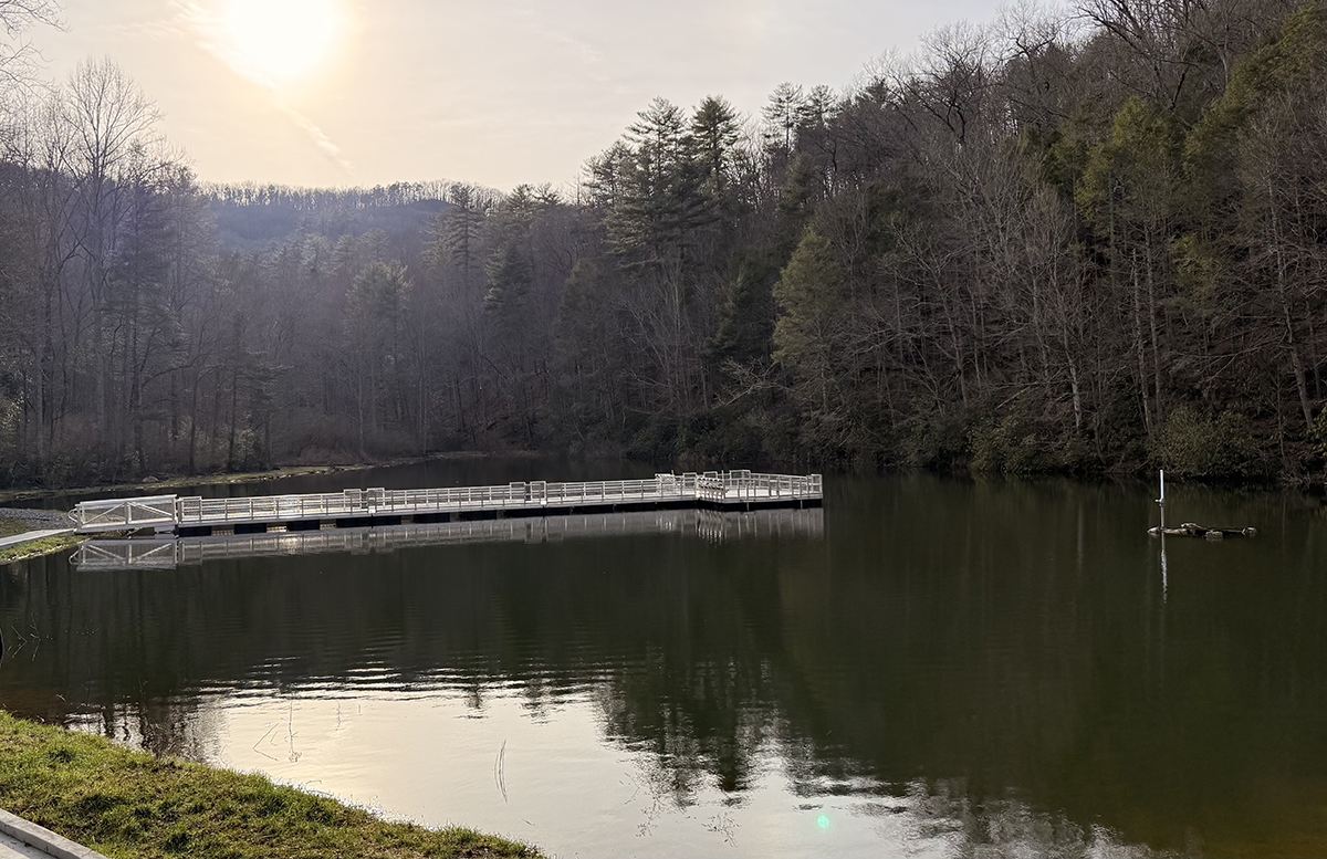 During the renovation, over 500 cubic yards of sediment were removed, and a broken water control valve was replaced to manage water levels. The renovation has enabled an expanded ADA-compliant sidewalk, ADA parking and picnic area, a new floating fishing pier, and an extended trail that provides greater access around the pond.