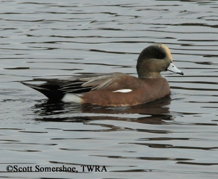 Similar Species: Eurasian Wigeons, extremely rare in Tennessee, have gray “armpits” on the under-wing.