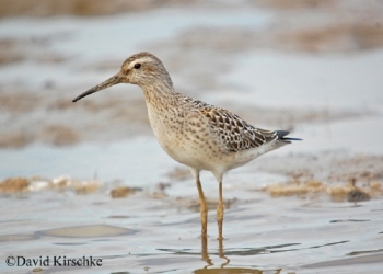 The Stilt Sandpiper is a more common migrant in the fall than in the spring in Tennessee, and in non-breeding plumage, it resembles a small Lesser Yellowlegs. This species breeds in the Arctic of North America, and winters primarily in the interior of central South America. The Stilt Sandpiper can be found statewide, but is more frequently encountered in Middle and West Tennessee from late April to late May, and then again from mid-July to mid-October.
